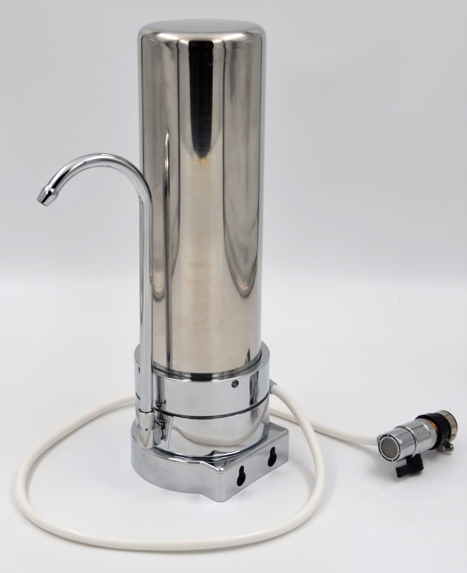 Συσκευή φιλτραρίσματος νερού οικιακής χρήσης για τοποθέτηση πάνω στον πάγκο της κουζίνας. Φέρει ανοξείδωτο μεταλλικό περίβλημα άριστης ποιότητας και ανθεκτικότητας στη χρήση. Υδροδοτείται απευθείας από την οικιακή βρύση, μέσω ειδικού αντάπτορα που προσαρμόζεται εύκολα σε κάθε τύπο μπαταρίας κουζίνας. Διαθέτει ανταλλακτικό φίλτρο ενεργού άνθρακα υψηλών προδιαγραφών. Μία πρακτική επιλογή για κάθε σπίτι ή γραφείο που εξασφαλίζει ότι το νερό σας είναι ασφαλές για κατανάλωση.