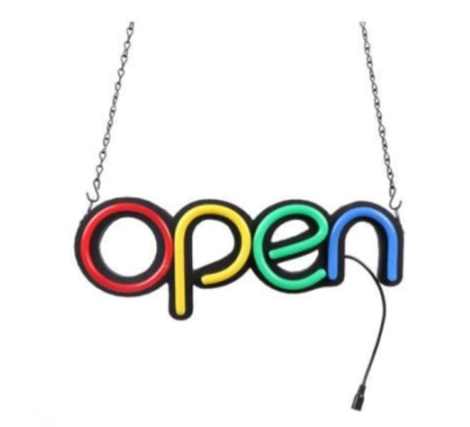 Φωτιζόμενη πινακίδα "OPEN" με χρωματιστά Led .