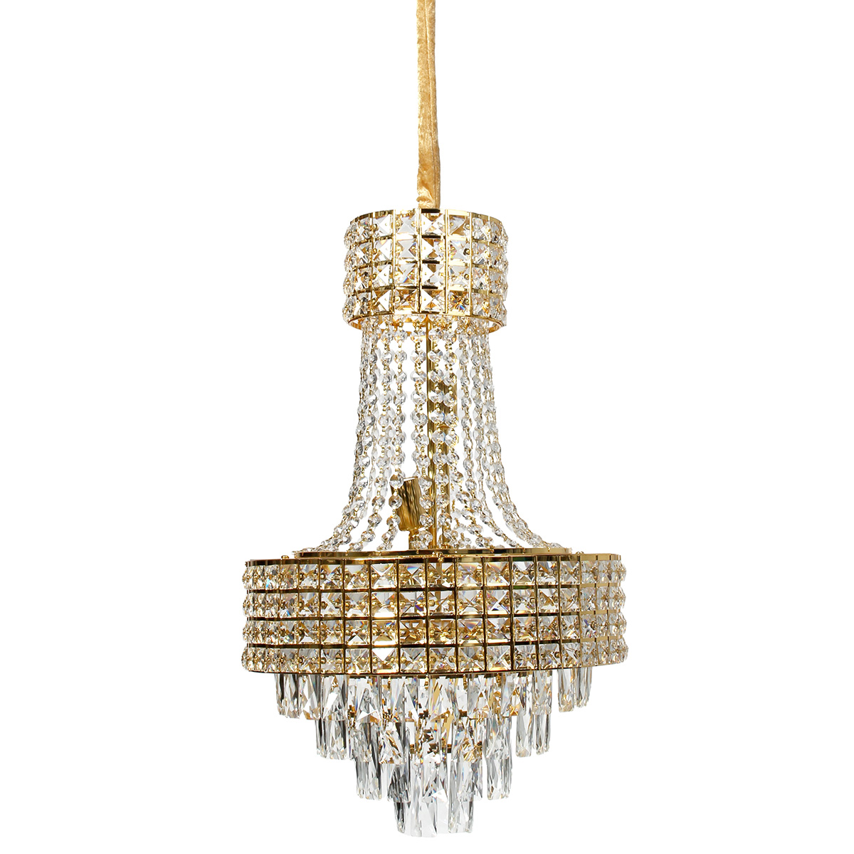 Φωτιστικό κρεμαστό μεταλλικό 6 Χ Ε14 Φ39Χ63 εκ. Χρυσό με κρύσταλλα – KESKOR 160900