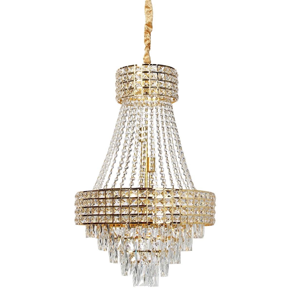 Φωτιστικό κρεμαστό μεταλλικό 8 Χ Ε14 Φ47Χ75 εκ. Χρυσό με κρύσταλλα – KESKOR 160901
