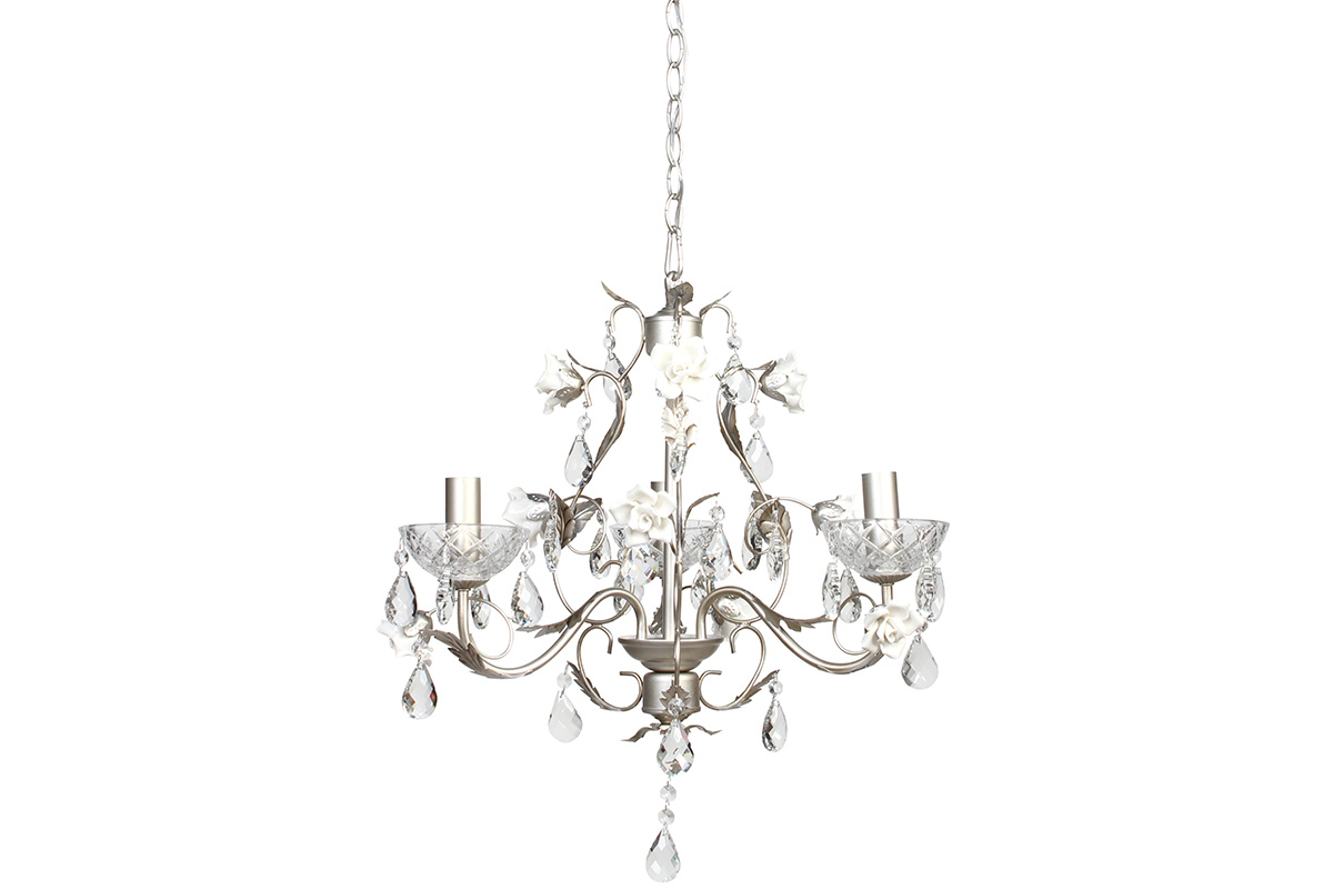 Φωτιστικό κρεμαστό 3 Χ Ε14 Φ50Χ50 εκ. Σαμπανί με κρύσταλλα και λευκά τριαντάφυλλα.