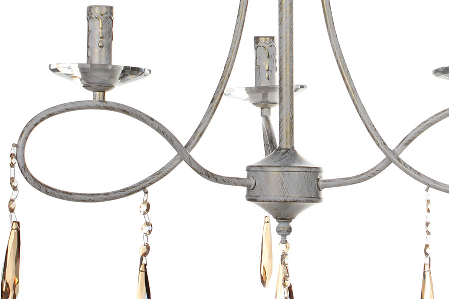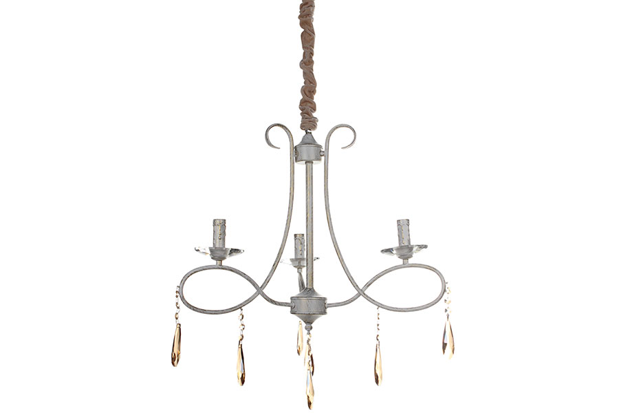 Φωτιστικό κρεμαστό 3 Χ Ε14 Φ60Χ60 εκ. πατίνα λευκό χρυσό με κρύσταλλα