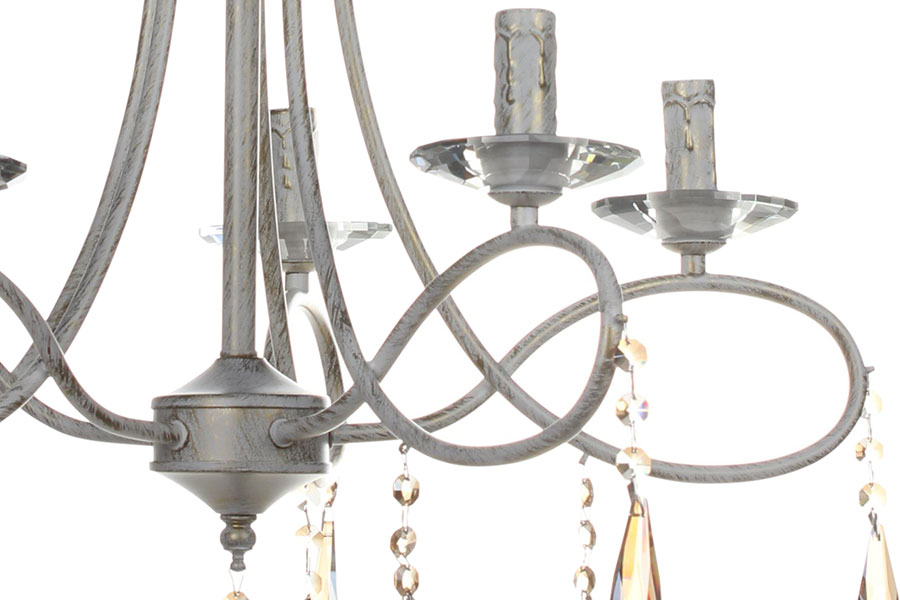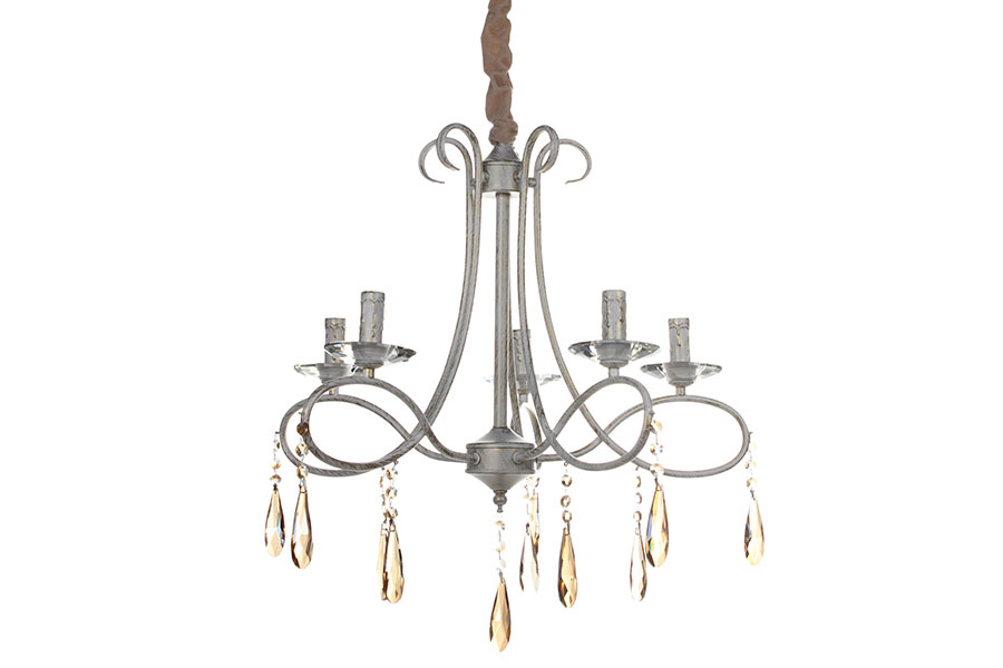 Φωτιστικό κρεμαστό 5 Χ Ε14 Φ60Χ60 εκ. πατίνα λευκό χρυσό με κρύσταλλα