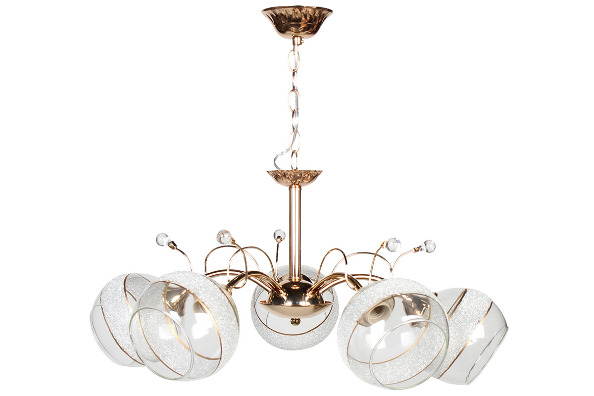 Φωτιστικό κρεμαστό 5 Χ Ε27 Φ58Χ26 εκ. χρυσό με γυαλιά – KESKOR 6610/5