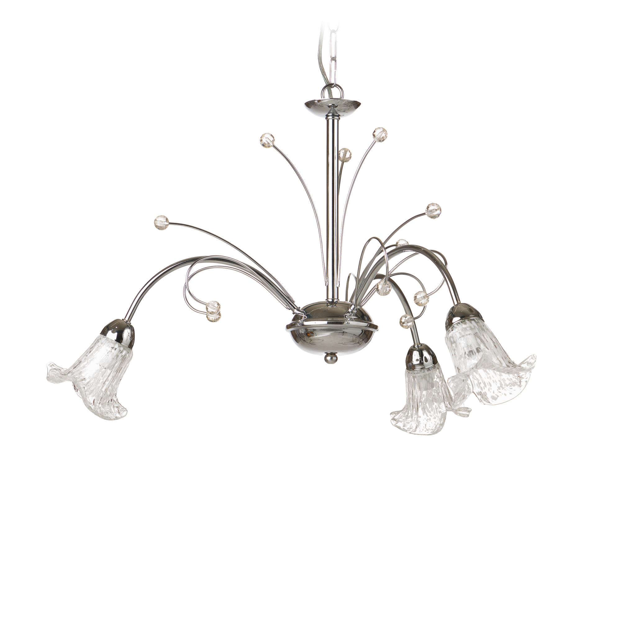 Φωτιστικό οροφής τρίφωτο με βάση στήριξης κατασκευασμένη από μέταλλο άριστης ποιότητας και ανθεκτικότητας στη φθορά και στο χρόνο, σε νίκελ χρώμα. Διαθέτει θέσεις για τρεις λαμπτήρες Ε14 με φυσητά γυαλιά και φέρει διακοσμητικές χάντρες. Μία κλασική επιλογή που ταιριάζει σε κάθε διακόσμηση και με τη διαχρονική κομψότητά του θα προσφέρει μια ξεχωριστή ατμόσφαιρα στο σπίτι σας.