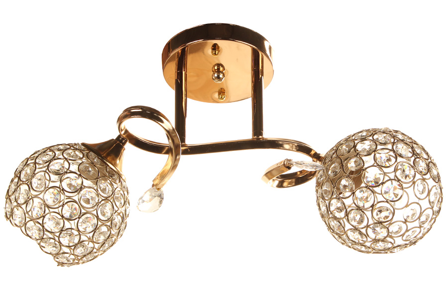 Φωτιστικό οροφής 2 Χ Ε27 Φ44Χ25 εκ. χρυσό με κρύσταλλα – KESKOR 1948/2 GD