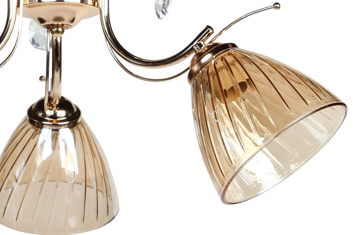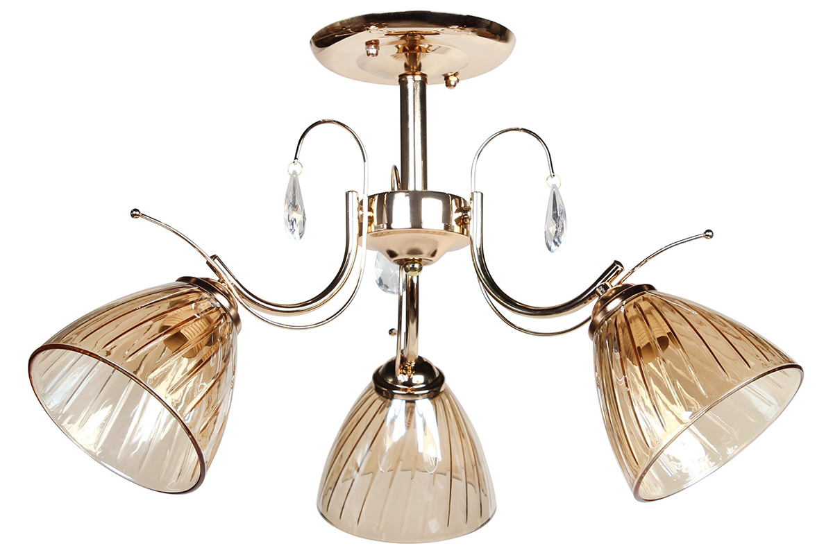 Φωτιστικό οροφής 3 Χ Ε27 Φ56Χ33 εκ. χρυσό με γυαλιά και ακρυλικά διακοσμητικά.