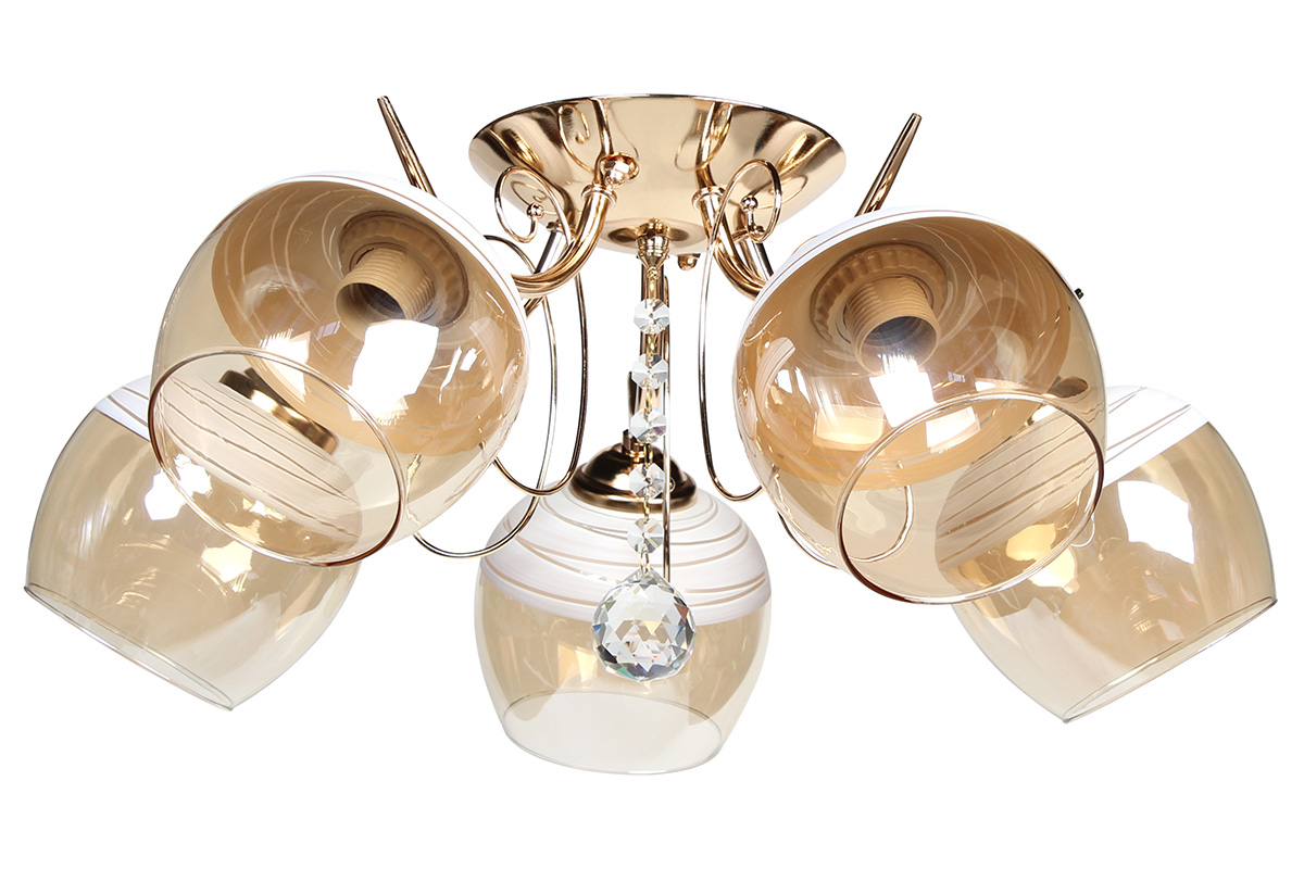 Φωτιστικό οροφής 5 Χ Ε27 Φ56Χ22 εκ. χρυσό με γυαλιά και κρύσταλλα.