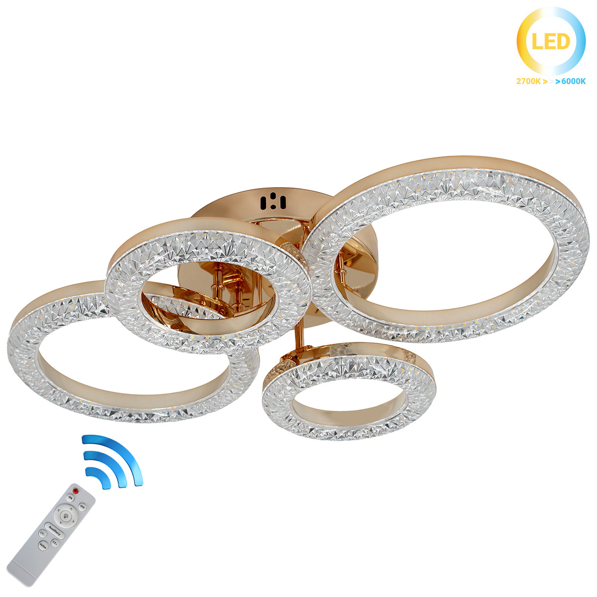 Αυτό το φωτιστικό οροφής LED 60W 60Χ40Χ13 εκ. σε χρυσό με ακρυλικό και controller αποτελεί εντυπωσιακή επιλογή για μεγαλύτερους χώρους. Η καμπύλη του σχεδίαση δημιουργεί αρμονικό φωτισμό. Διαθέτει επιλογή θερμοκρασίας φωτός και dimmer για προσωπική προσαρμογή.