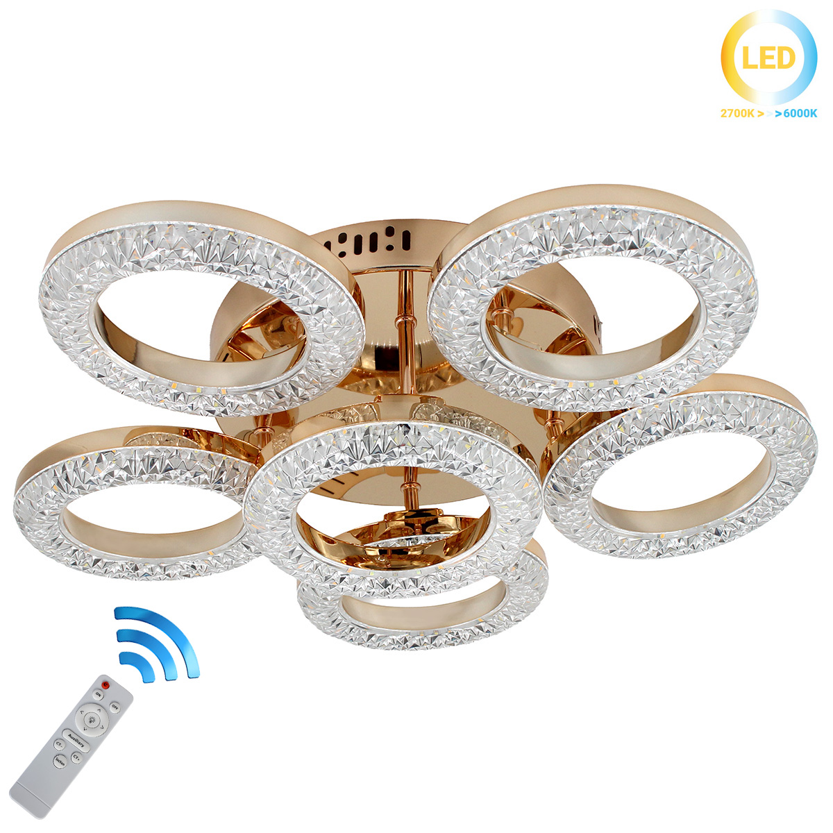 Αυτό το φωτιστικό οροφής LED 70W Φ50Χ14 εκ. σε χρυσό με ακρυλικό και controller προσφέρει ισχυρό φωτισμό και πολυτελή εμφάνιση. Η κυκλική μορφή του αναδεικνύει τον χώρο με μοντέρνα αισθητική. Διαθέτει εναλλαγή χρώματος φωτισμού και dimmer για αυξομείωση έντασης.