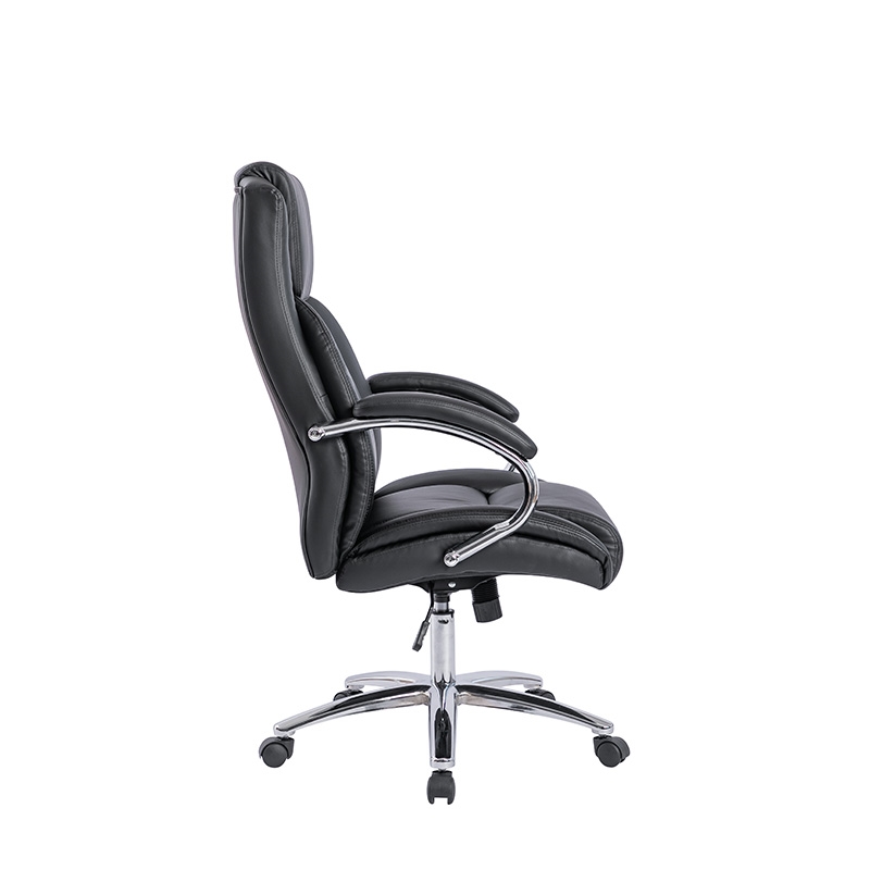 A5200 πολυθρόνα διαχρονική, διευθυντική με ρυθμιζόμενο ύψος που συνδυάζει ψηλή άνετη πλάτη δίνοντας αίσθηση πολυτελείας στο χώρο σας,ενδεδυμένη με μαύρο PU.Τα μπράτσα της είναι χρωμίου φαρδιά με μαξιλαράκι για άνετο στήριγμα των χεριών.Διαθέτει πόδι χρωμίου για μεγαλύτερη αντοχή.