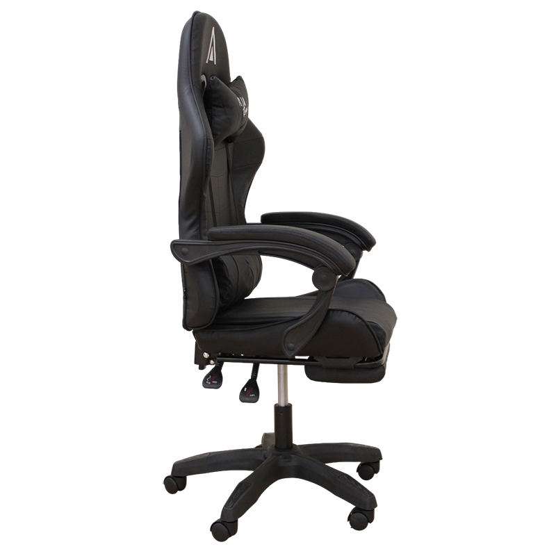 A99350 gaming πολυθρόνα με ιδιαίτερο design.Περιμετρικά η πλάτη,το προσκέφαλο και το κάθισμα σε χρώμα μαύρο PVC.Διαθέτει μαξιλάρι για την μέση και το κεφάλι που προσφέρει μεγαλύτερη άνεση και επεκτεινόμενο υποπόδιο για μεγαλύτερη ξεκούραση.Με ρυθμιζόμενο ύψος και άνετα μπράτσα.