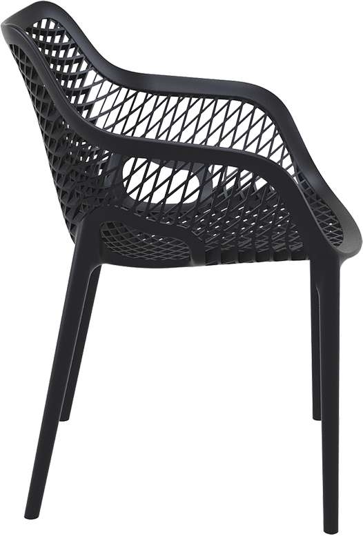 Air XL πολυθρόνα του οίκου Siesta σε χρώμα black, με σχεδιασμό υψηλής αισθητικής. Κατασκευασμένη από πολυπροπυλένιο με 20% fiber glass για απόλυτη αντοχή στο χρόνο. Κατάλληλη για εσωτερική και εξωτερική χρήση, στοιβαζόμενη,ιδανική επιλογή για επαγγελματικούς χώρους. Πιστοποιημένο προϊόν από τον Ιταλικό οίκο CATAS.