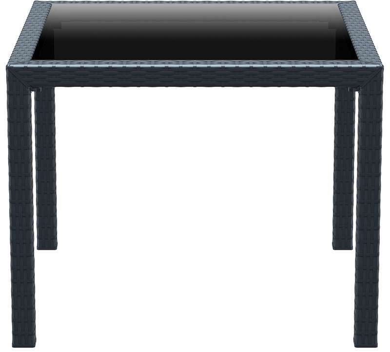 Bali τραπέζι 94Χ94Χ75εκ. του οίκου Siesta σε χρώμα dark grey.Κατασκευασμένο από πολυπροπυλένιο και επιφάνεια από τζάμι ασφαλείας.Κατάλληλο για εσωτερική και εξωτερική χρήση.Διαθέτει UV Protection.Πιστοποιημένο προιόν από τον Ιταλικό οίκο CATAS.