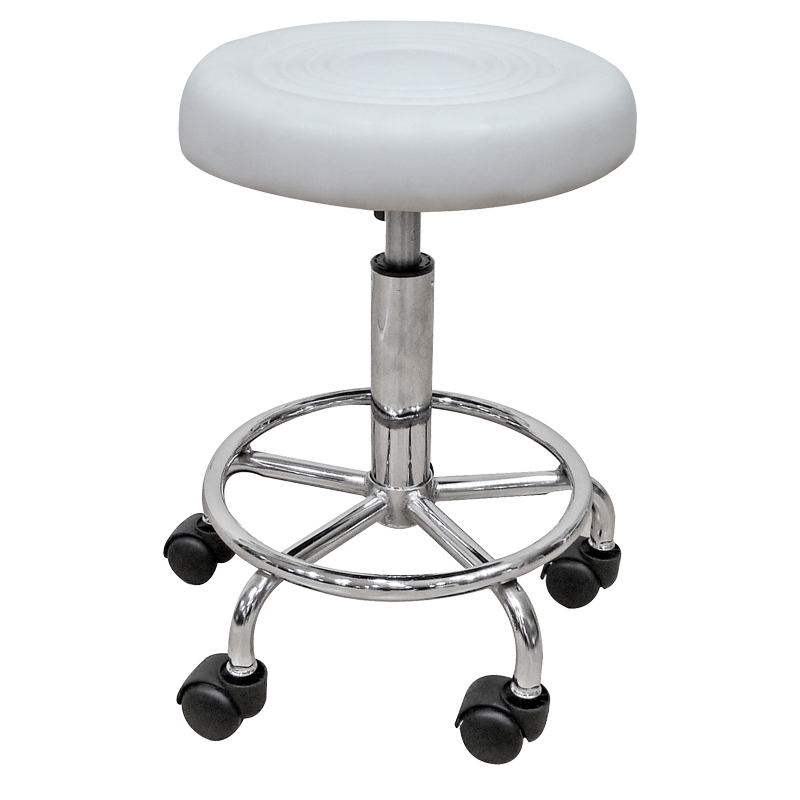 Bar70 σκαμπό τροχήλατο επενδυμένο με PU σε χρώμα λευκό. Διαθέτει ρόδες για εύκολη μετακίνηση, καθώς και αμορτισέρ ρύθμισης ύψους, επιτρέποντάς σας να προσαρμόζετε το κάθισμα ανάλογα με τις ανάγκες του χώρου και της εργασίας σας. Η βάση και το υποπόδιο από χρώμιο εξασφαλίζουν σταθερότητα και στήριξη. Είναι σχεδιασμένο για άνεση, εργονομία και ανθεκτικότητα, ιδανικό για πολύωρη χρήση σε σχεδιαστήρια και ταμεία.