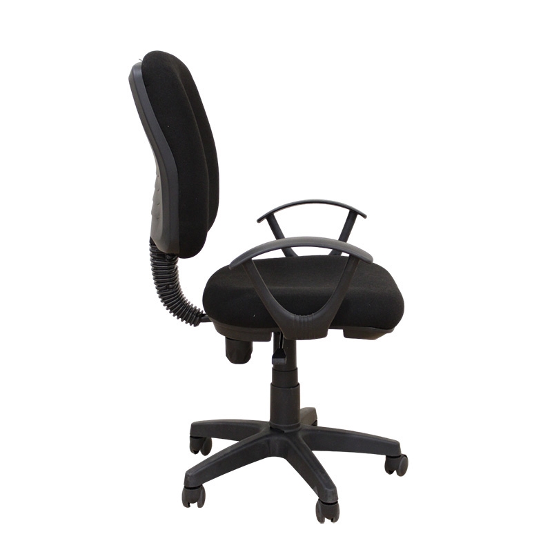 BS750 πολυθρόνα γραφείου με ρυθμιζόμενο ύψος και άνετο κάθισμα, πλάτη και κάθισμα ενδεδυμένο με μαύρο ύφασμα.