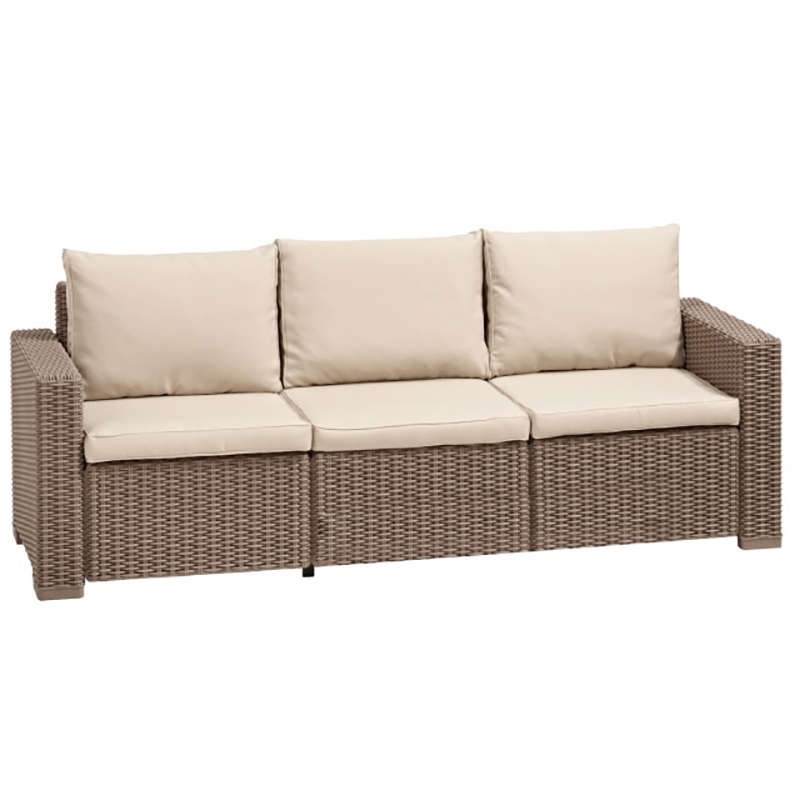 Καναπές CALIFORNIA του οίκου Allibert K/D 3θέσιος σε χρώμα cappuccino με μαξιλάρι από resin.Συνδυάστε τον με πολυθρόνα και τραπεζάκι του ίδιου οίκου για ένα ολοκληρωμένο σετ.