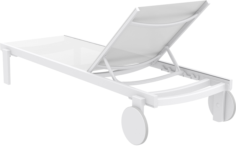 Casablanca ξαπλώστρα του οίκου Siesta σε χρώμα white/white από υψηλής ποιότητας αλουμίνιο & πολυπροπυλένιο με ενίσχυση από υαλώδεις ίνες (fiber glass) για απόλυτη αντοχή και polyester fabric Serge Ferrari.Είναι στοιβαζόμενη,έχει ρυθμιζόμενη πλάτη 5 θέσεων,αντιολισθητικά πέλματα εμπρός και ρόδες από καουτσούκ.Πιστοποιημένο προϊόν από τον Ιταλικό οίκο CATAS.