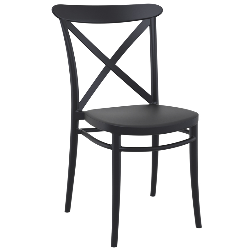 Cross καρέκλα του οίκου Siesta σε χρώμα black, με design υψηλής αισθητικής. Κατασκευασμένη από πολυπροπυλένιο με 20% fiber glass για απόλυτη αντοχή στον χρόνο. Κατάλληλη για εσωτερική και εξωτερική χρήση, στοιβαζόμενη,ιδανική επιλογή για επαγγελματικούς χώρους.Πιστοποιημένο προϊόν από τον Ιταλικό οίκο CATAS.