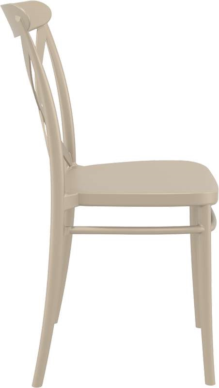 Cross καρέκλα του οίκου Siesta σε χρώμα taupe, με design υψηλής αισθητικής. Κατασκευασμένη από πολυπροπυλένιο με 20% fiber glass για απόλυτη αντοχή στον χρόνο. Κατάλληλη για εσωτερική και εξωτερική χρήση, στοιβαζόμενη,ιδανική επιλογή για επαγγελματικούς χώρους.Πιστοποιημένο προϊόν από τον Ιταλικό οίκο CATAS.