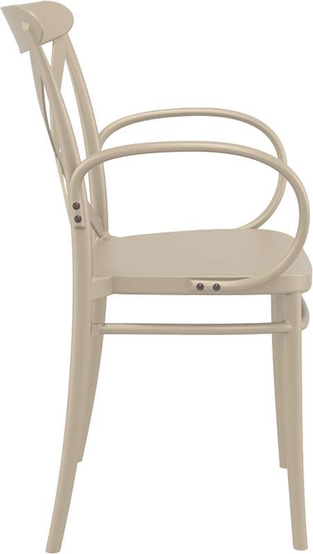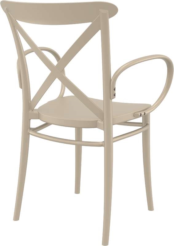 Cross XL πολυθρόνα του οίκου Siesta σε χρώμα taupe, με design υψηλής αισθητικής. Κατασκευασμένη από πολυπροπυλένιο με 20% fiber glass για απόλυτη αντοχή στον χρόνο. Κατάλληλη για εσωτερική και εξωτερική χρήση, στοιβαζόμενη,ιδανική επιλογή για επαγγελματικούς χώρους.Πιστοποιημένο προϊόν από τον Ιταλικό οίκο CATAS.