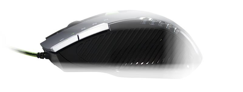 The X4 is a Gaming Mouse that focuses on the essential needs of the players that require lots of programmable buttons to be the best in games. Works with the new Avago 5050 optical sensor of extreme quality, adjustable on 4 levels of DPI, with values ranging from 600-2500DPI which can be easily identified by the side indicators light. With its 8 programmable buttons, users can store up to 8 different macros in each of the five profiles. This information is stored in the internal memory of the X4, which allows users to use their favorite profiles on different computers without reinstalling the software or reconfigure settings. The X4 is ambidextrous and suitable for all types of players.