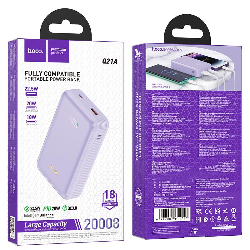 HOCO Q21A GREAT FULLY COMPATIBLE POWER BANK, 20.000mAh, 22.5W ΜΕ ΟΘΟΝΗ, ΜΩΒ