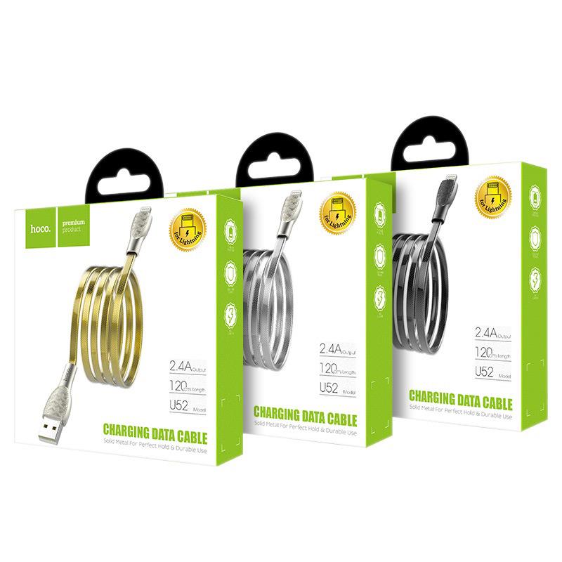 U52 Bright charging data cable 2.4A USB to Lightning 1.2m length zinc alloy joints transparent PVC braid