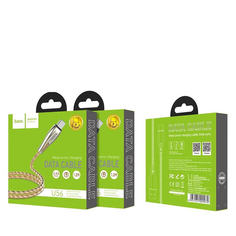 HOCO U56 METAL ARMOR ΜΕΤΑΛΛΙΚΟ ΚΑΛΩΔΙΟ TYPE-C ΦΟΡΤΙΣΗΣ & DATA 1.2m, ΧΡΥΣΟ