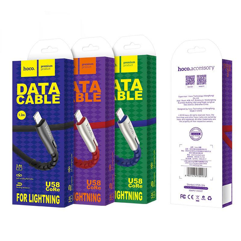 U58 Core USB to Lightning charging data cable 1.2m current 2.4A nickel-zinc alloy connectors and TPE braid