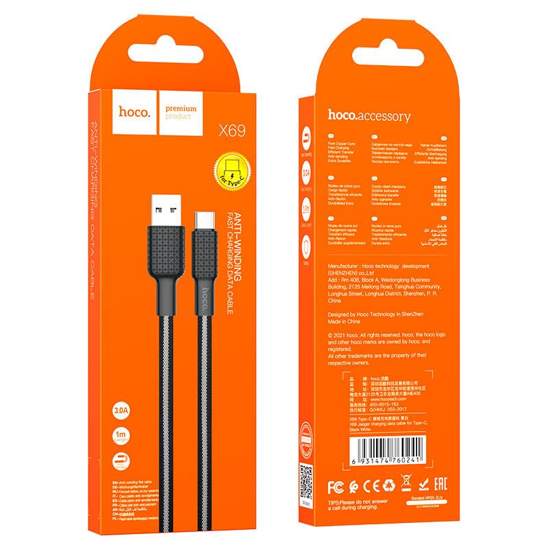 HOCO X69 JAEGER ΚΑΛΩΔΙΟ ΦΟΡΤΙΣΗΣ , USB ΣΕ TYPE-C , ΜΑΥΡΟ/ΛΕΥΚΟ