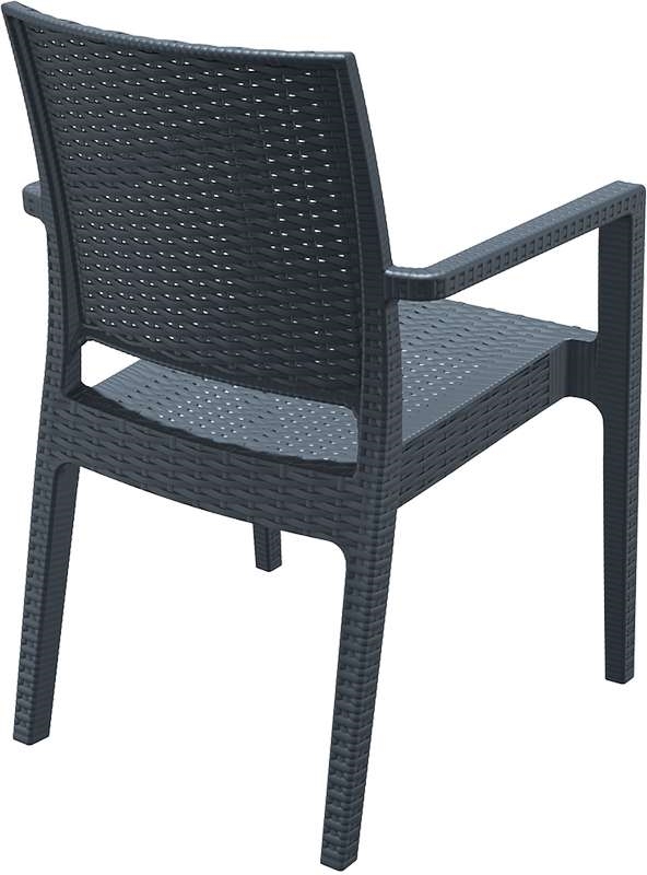 Ibiza πολυθρόνα του οίκου Siesta σε χρώμα dark grey,από υψηλής ποιότητας πολυπροπυλένιο με ενίσχυση από υαλώδεις ίνες (fiber glass) για απόλυτη αντοχή. Χωρίς μεταλλικό σκελετό για μεγαλύτερη αξιοπιστία στον χρόνο. Είναι στοιβαζόμενη και διαθέτει UV protection για μέγιστη προστασία από τον ήλιο ώστε να μην αλλοιωθούν τα χρώματα. Κατάλληλη για εσωτερική και εξωτερική χρήση.Πιστοποιημένο προϊόν από τον Ιταλικό οίκο CATAS.