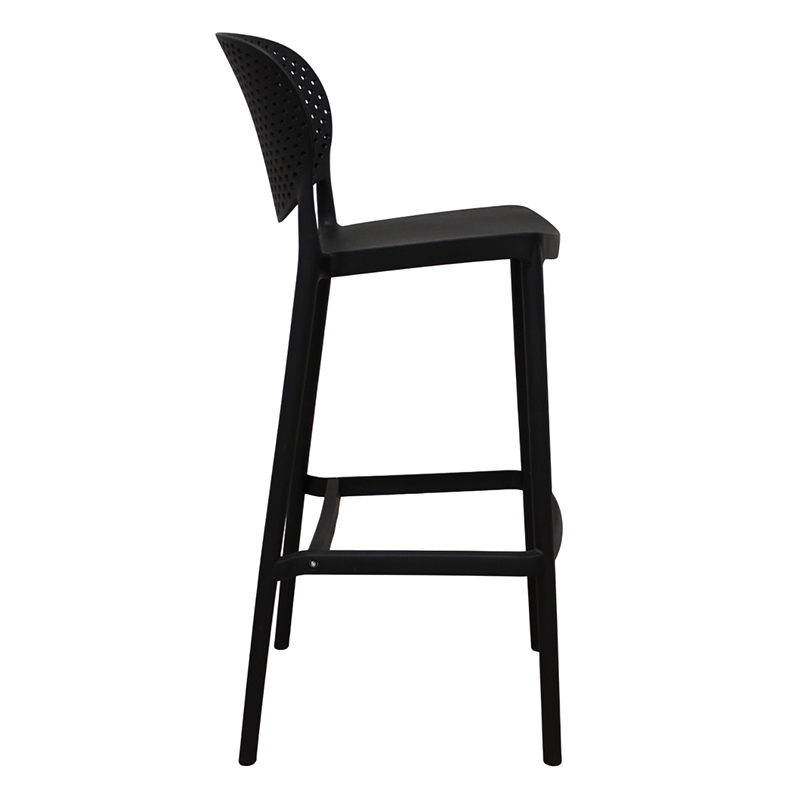 JOY σκαμπό μπάρ σε χρώμα black κατασκευασμένο από πολυπροπυλένιο. Με ιδιαίτερο design στην πλάτη και το κάθισμα.Είναι στοιβαζόμενο για εξοικονόμηση χώρου και εύκολη αποθήκευση.Κατάλληλο για εσωτερική και εξωτερική χρήση.