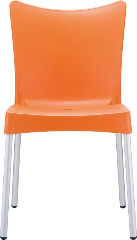 Juliette καρέκλα του οίκου Siesta σε χρώμα orange,κατασκευασμένη από πολυπροπυλένιο ενισχυμένο με 20% fiber glass και πόδια από ανοδειωμένο αλουμίνιο Φ25mm για απόλυτη αντοχή στον χρόνο.Κατάλληλη για εσωτερική και εξωτερική χρήση. Είναι στοιβαζόμενη και ιδανική για επαγγελματική χρήση.