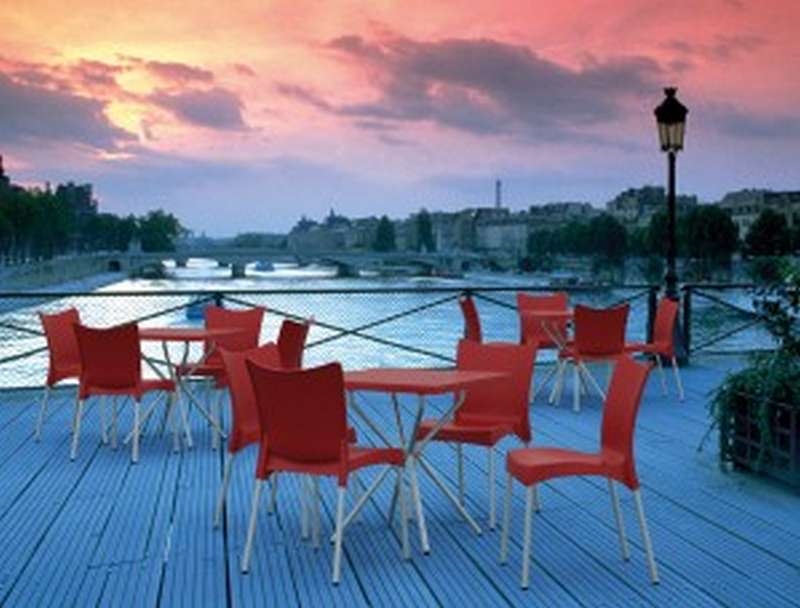 Juliette καρέκλα του οίκου Siesta σε χρώμα red,κατασκευασμένη από πολυπροπυλένιο ενισχυμένο με 20% fiber glass και πόδια από ανοδειωμένο αλουμίνιο Φ25mm για απόλυτη αντοχή στον χρόνο.Κατάλληλη για εσωτερική και εξωτερική χρήση. Είναι στοιβαζόμενη και ιδανική για επαγγελματική χρήση.