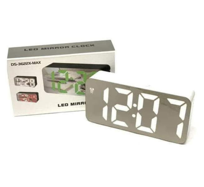 LED ρολόι ξυπνητήρι καθρέφτης λευκό με λευκά ψηφία DS-3622X OEM