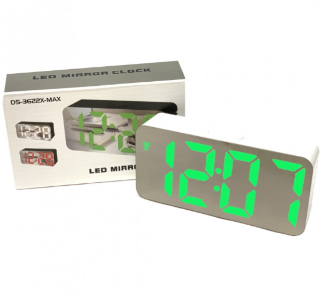 LED ρολόι ξυπνητήρι καθρέφτης λευκό με πράσινα ψηφία DS-3622X OEM