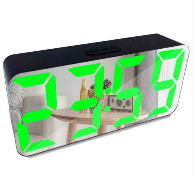LED ρολόι ξυπνητήρι καθρέφτης μαύρο με πράσινα ψηφία DS-3622X OEM