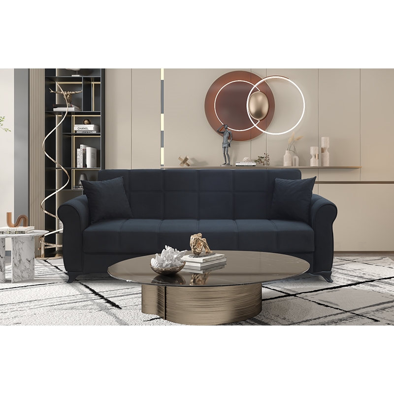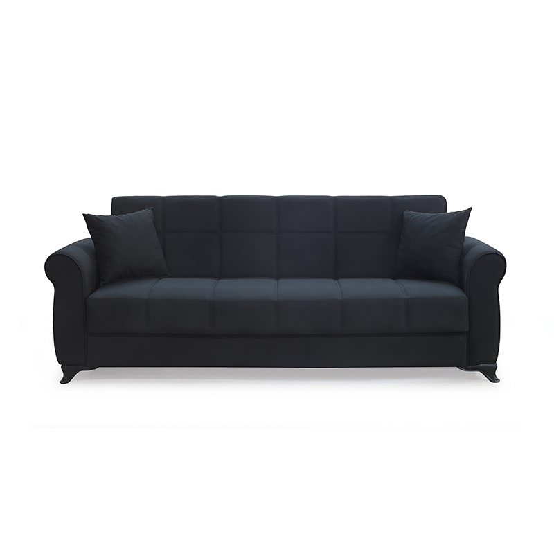 Lena τριθέσιος καναπές/κρεβάτι σε χρώμα black με διακοσμητικά μαξιλάρια.Ο κομψός και διαχρονικός σχεδιασμός του ταιριάζει σε κάθε σαλόνι, ενώ μπορεί να συνδυαστεί αρμονικά με τον διθέσιο της ίδιας σειράς για ένα ολοκληρωμένο σετ. Διαθέτει εύκολο στη χρήση μηχανισμό, ώστε να μετατρέπεται σε κρεβάτι ανά πάσα στιγμή. Ο αποθηκευτικός χώρος που υπάρχει εσωτερικά του καναπέ εξυπηρετεί στην τοποθέτηση αντικειμένων που χρειαζόμαστε καθημερινά, αλλά δεν θέλουμε να έχουμε συνεχώς σε εμφανές σημείο στο χώρο μας.