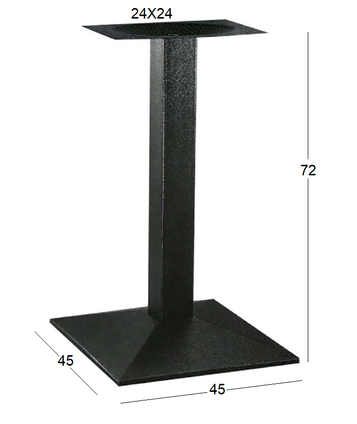 Lima μεταλλική βάση 45Χ45Χ72εκ. με ρεγουλατόρους σε χρώμα μαύρο. Με μοντέρνο σχεδιασμό,κατάλληλη για τον επαγγελματικό σας χώρο.Συνδυάστε την με καπάκι werzalit σε διάφορα χρώματα.