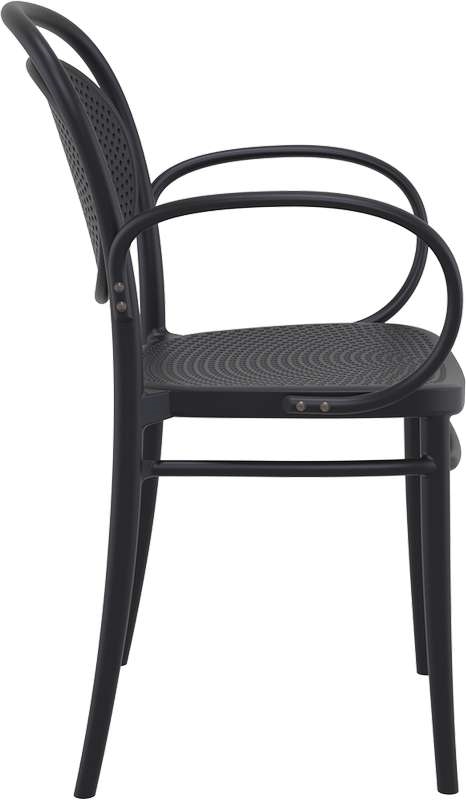 Marcel XL πολυθρόνα του οίκου Siesta σε χρώμα black, με design υψηλής αισθητικής. Κατασκευασμένη από πολυπροπυλένιο με 20% fiber glass για απόλυτη αντοχή στον χρόνο. Κατάλληλη για εσωτερική και εξωτερική χρήση, στοιβαζόμενη,ιδανική επιλογή για επαγγελματικούς χώρους.Πιστοποιημένο προϊόν από τον Ιταλικό οίκο CATAS.