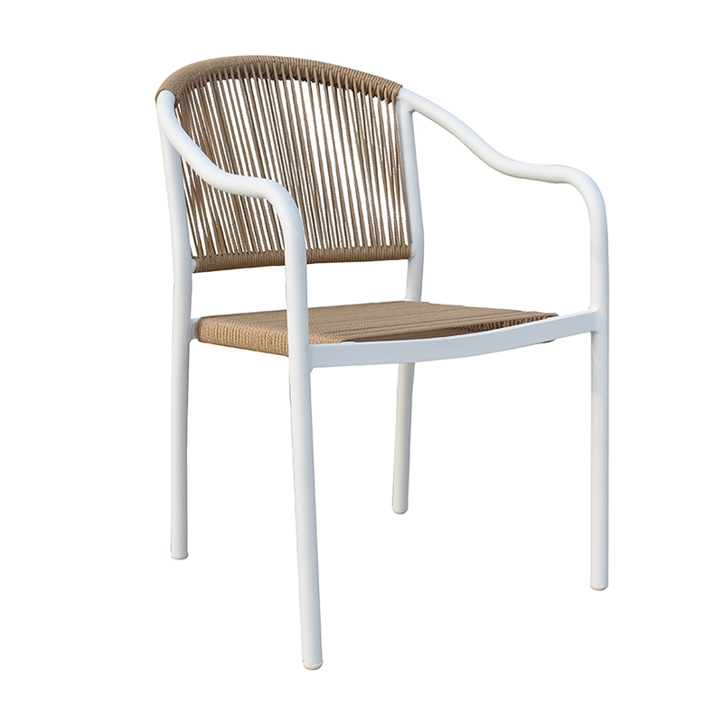 Martel πολυθρόνα αλουμινίου με σκελετό βαφής σε χρώμα white με μοντέρνο design.Η πλάτη και το κάθισμα είναι με επένδυση από συνθετικό σχοινί σε χρώμα μπέζ. Με στρογγυλεμένη πλάτη για μεγαλύτερη άνεση. Είναι στοιβαζόμενη για εύκολη αποθήκευση και κατάλληλη για εξωτερική χρήση.