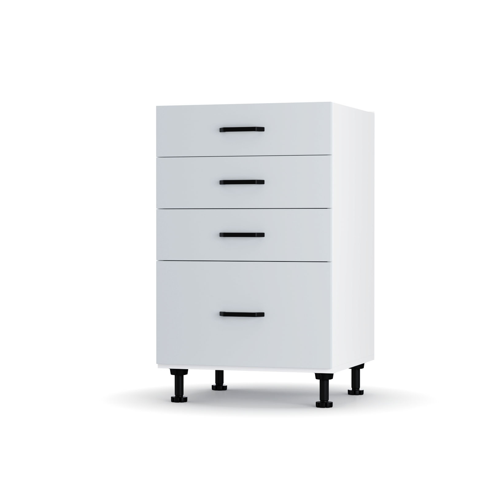 Modest Επιδαπέδιο Ντουλάπι, Ευρωπαϊκής κατασκευής, εξαιρετικής ποιότητας και υψηλής αντοχής σε Γκρι απόχρωση. Το έπιπλο διαθέτει τέσσερα συρτάρια για την αποθήκευση αντικειμένων καθώς και τέσσερα χερούλια. Μπορείτε να το συνδυάσετε με τα υπόλοιπα ντουλάπια κουζίνας της σειράς Modest.