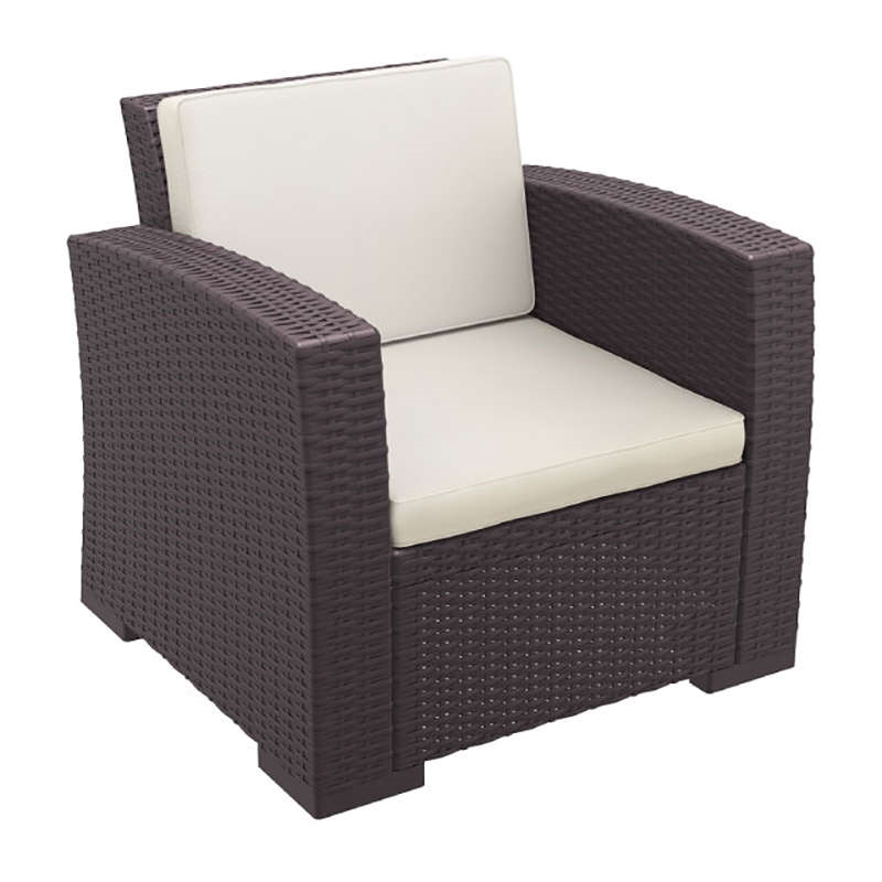 Monaco πολυθρόνα του οίκου Siesta σε χρώμα brown με μαξιλάρι, K/D, από υψηλής ποιότητας πολυπροπυλένιο με ενίσχυση από υαλώδεις ίνες (fiber glass) για απόλυτη αντοχή. Χωρίς μεταλλικό σκελετό για μεγαλύτερη αξιοπιστία στον χρόνο. Διαθέτει UV protection για μέγιστη προστασία από τον ήλιο ώστε να μην αλλοιωθούν τα χρώματα. Κατάλληλη για εσωτερική και εξωτερική χρήση. ιστοποιημένο προϊόν από τον Ιταλικό οίκο CATAS.