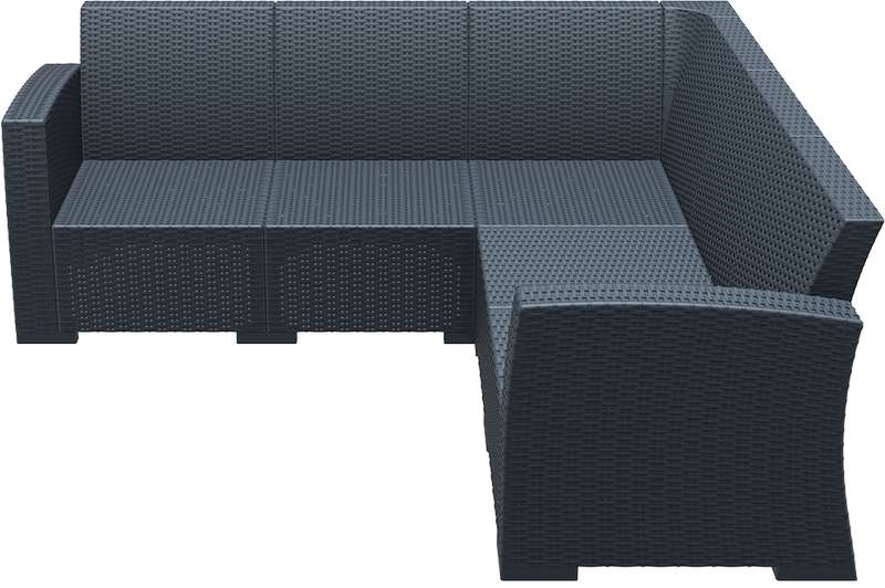 Monaco γωνία του οίκου Siesta σε χρώμα dark grey, με μαξιλάρια, K/D, από υψηλής ποιότητας πολυπροπυλένιο με ενίσχυση από υαλώδεις ίνες (fiber glass) για απόλυτη αντοχή. Χωρίς μεταλλικό σκελετό για μεγαλύτερη αξιοπιστία στον χρόνο. Διαθέτει UV protection για μέγιστη προστασία από τον ήλιο ώστε να μην αλλοιωθούν τα χρώματα. Κατάλληλη για εσωτερική και εξωτερική χρήση. Πιστοποιημένο προιόν από τον Ιταλικό οίκο CATAS.