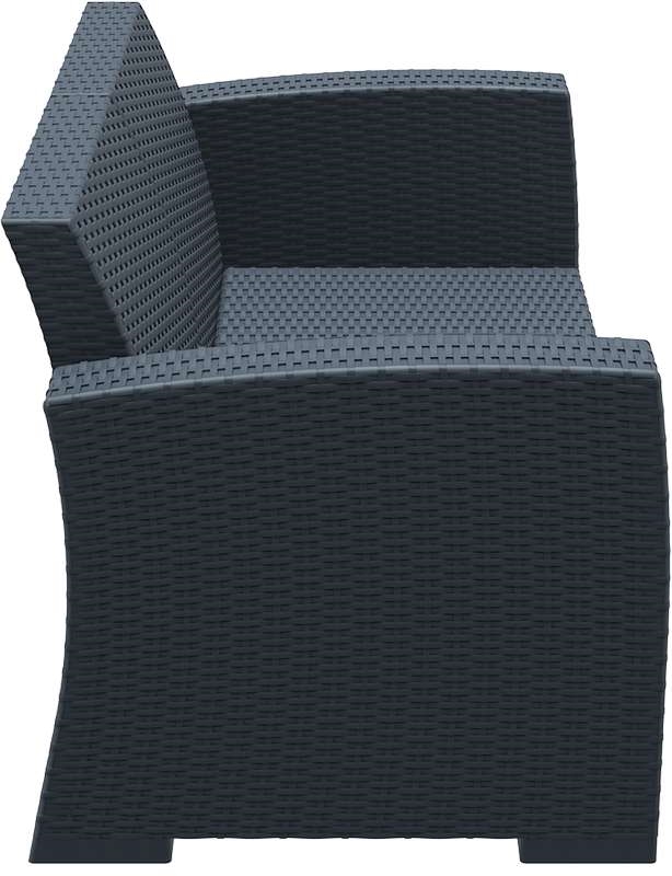 Monaco καναπές 2θέσιος του οίκου Siesta σε χρώμα dark grey, K/D από υψηλής ποιότητας πολυπροπυλένιο με ενίσχυση από υαλώδεις ίνες (fiber glass) για απόλυτη αντοχή. Χωρίς μεταλλικό σκελετό για μεγαλύτερη αξιοπιστία στον χρόνο. Διαθέτει UV protection για μέγιστη προστασία από τον ήλιο ώστε να μην αλλοιωθούν τα χρώματα. Κατάλληλος για εσωτερική και εξωτερική χρήση. Διατίθεται και μαξιλάρι.Πιστοποιημένο προιόν από τον Ιταλικό οίκο CATAS.