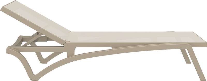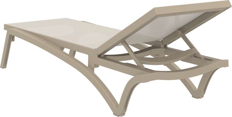 Pacific ξαπλώστρα του οίκου Siesta σε χρώμα taupe/taupe από υψηλής ποιότητας πολυπροπυλένιο με ενίσχυση από υαλώδεις ίνες (fiber glass) για απόλυτη αντοχή και polyester fabric Serge Ferrari.Είναι στοιβαζόμενη,έχει ρυθμιζόμενη πλάτη 5 θέσεων,μικρά ροδάκια στο πίσω μέρος για εύκολη μετακίνηση και αντιολισθητικά πέλματα εμπρός.Κατάλληλη για εσωτερική και εξωτερική χρήση.Πιστοποιημένο προιόν από τον Ιταλικό οίκο CATAS.