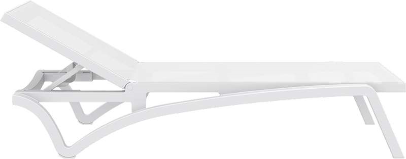 Pacific ξαπλώστρα του οίκου Siesta σε χρώμα white/white από υψηλής ποιότητας πολυπροπυλένιο με ενίσχυση από υαλώδεις ίνες (fiber glass) για απόλυτη αντοχή και polyester fabric Serge Ferrari.Είναι στοιβαζόμενη,έχει ρυθμιζόμενη πλάτη 5 θέσεων,μικρά ροδάκια στo πίσω μέρος για εύκολη μετακίνηση και αντιολισθητικά πέλματα εμπρός.Κατάλληλη για εσωτερική και εξωτερική χρήση.Πιστοποιημένο προιόν από τον Ιταλικό οίκο CATAS.