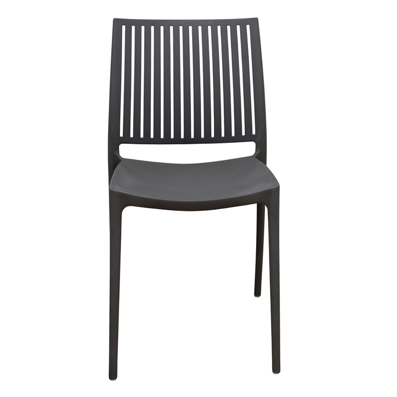 Καρέκλα PAOLINA σε χρώμα dark grey κατασκευασμένη από πολυπροπυλένιο με μοντέρνο σχεδιασμό στην πλάτη.Είναι στοιβαζόμενη για εξοικονόμηση χώρου και εύκολη αποθήκευση.Κατάλληλη για εσωτερική και εξωτερική χρήση.