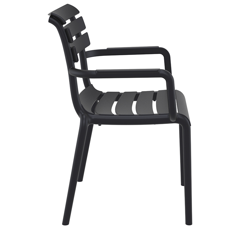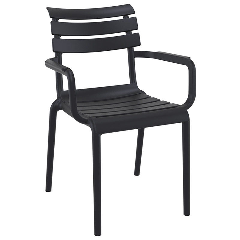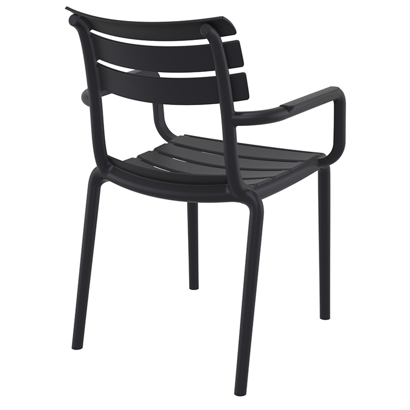 Paris πολυθρόνα του οίκου Siesta σε χρώμα black, με design υψηλής αισθητικής. Κατασκευασμένη από πολυπροπυλένιο με 20% fiber glass για απόλυτη αντοχή στον χρόνο. Κατάλληλη για εσωτερική και εξωτερική χρήση, στοιβαζόμενη,ιδανική επιλογή για επαγγελματικούς χώρους.Πιστοποιημένο προϊόν από τον Ιταλικό οίκο CATAS.